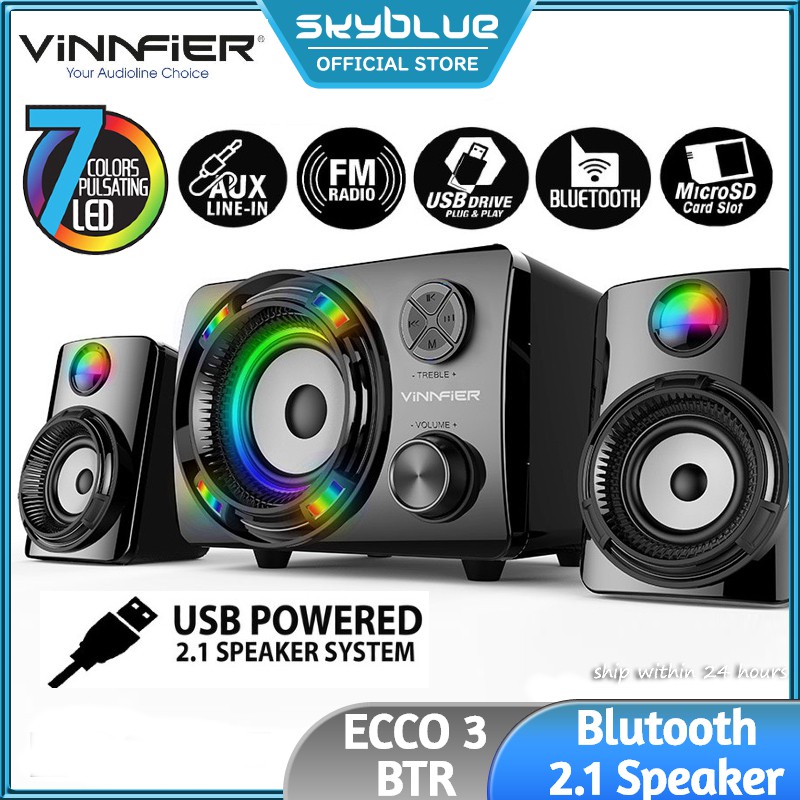 Vinnfier ECCO 3 Bluetooth LED RGB Light Speaker Bass With I USB/AUX/RM Radio For Laptop/PC/PS4/TV/Phone/Tablet/Computer